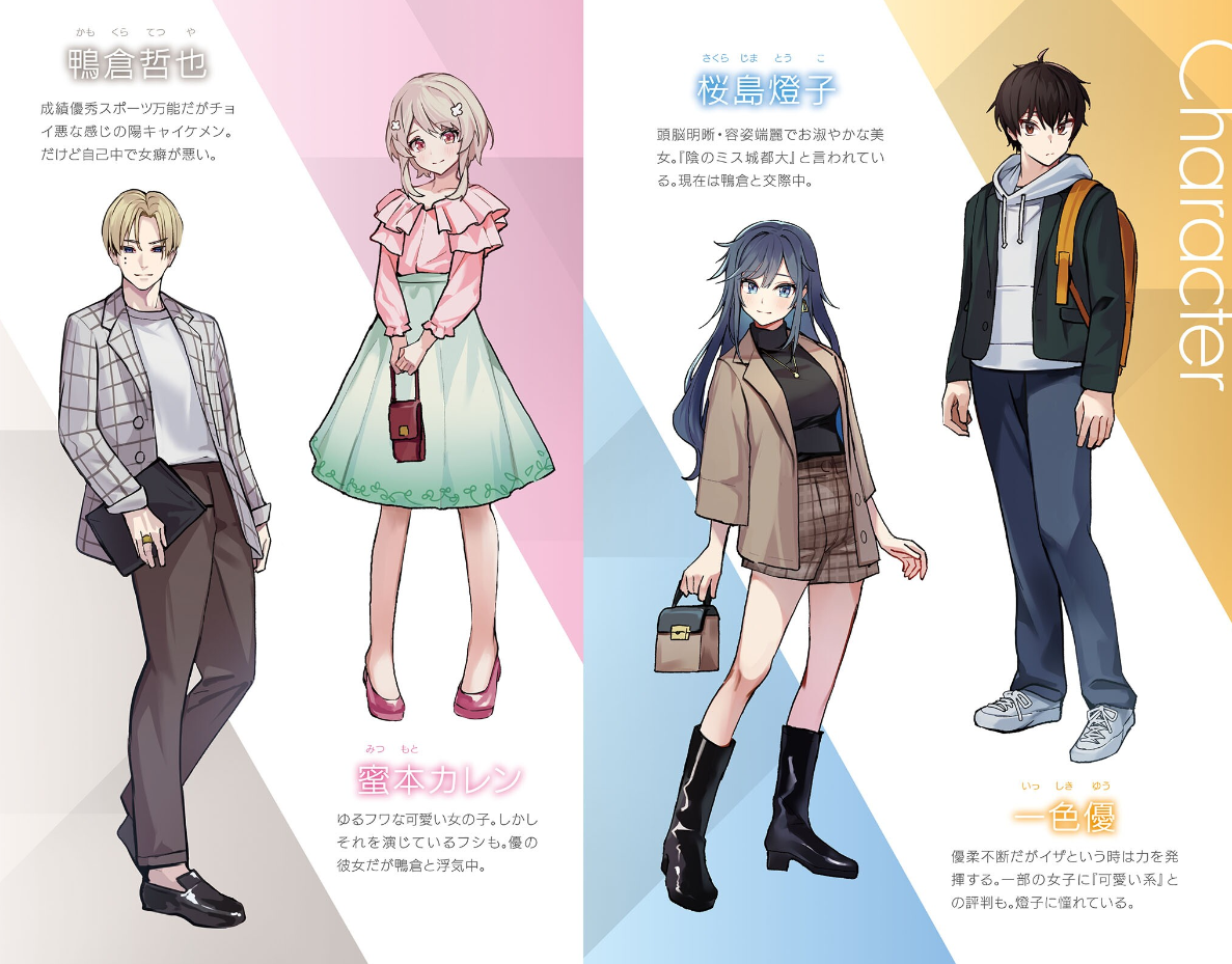 하지만 어느 날, 스구루는 카렌이 자신의 선배·카모쿠라 테츠야와 바람을 피고 있던 사실을 알아 버린다.